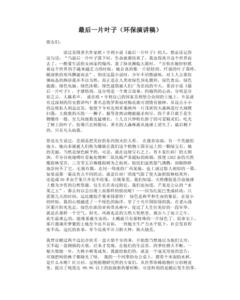 水,是人类生命之泉,可是,现在又有多少条江河受到污染呀!近年来,黄河流域污染非常严重,每年排入黄河干支流的污水量达42亿立方米,很多河段流淌着的都是污水。惨痛的生态教训,已经引起世界各国和全人类的重视,国际奥委会评估团视察申奥城市,就把生态环境改善列为其中重要的内容。我们国家高度重视环保工作台,先后出台了许多保护环境的政策和法规,开展了许多保护环境的工作和活动。“绿色校园创建活动”就是其中重要的内容之一。