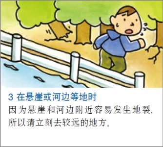 首先要保护好头部,避开危险之处。当大地剧烈摇晃、站立不稳的时候,人们都会有扶靠、抓住什么的心理。身边的门柱、墙壁大多会成为扶靠的对象。但是,这些看上去挺结实牢固的东西,实际上却是危险的。在1987年日本宫城县海底地震时,由于水泥预制板墙、门柱的倒塌,曾造成多人死伤。因而务必不要靠近水泥预制板墙、门柱等处躲避。在繁华街、楼区,最危险的是玻璃窗、广告牌等物掉落下来砸伤人。要注意用手或手提包等物保护好头部。此外,还应该注意自动售货机翻倒伤人。