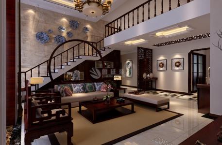 回廊是一个容易被忽视的场所,它是连接几个空间的桥梁,中式的回廊常采用雕花门和屏风作为房间之间的隔断,但是如果回廊太长,就会让空间显得逼仄。可以考虑利用分段式的墙体来代替门与屏风,再在墙面挂贴木饰板条,以便与整体环境相和谐。与走廊相连的楼梯结合木质与不锈钢两种材料设计成竹节的感觉,形式感呼应了隔断墙贴面的竖条样式。