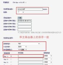 6、“信道”、“密钥类型”、“认证类型”、“密码”等参数请参照主路由器上的信息进行设置。(主路由器指的是可以上网的那一台无线路由器)