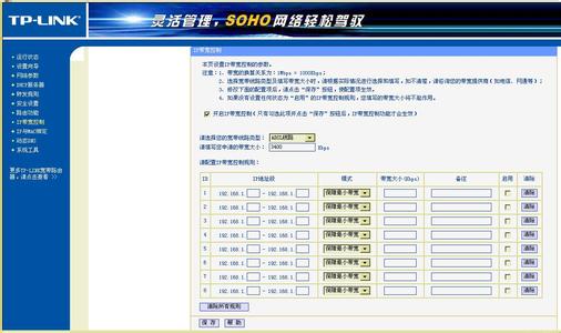路由器ip带宽控制设置的方法:线路类型:ADSL或者是以太网接入,请按照您的实际情况填写线路类型以及带宽大小