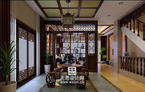 镂空的窗花加上造型独特的桌椅,很好的突出了中式风格,现代化的地砖元素简化了强烈的中式风格。设计者用屏风将大面积的客厅分隔成2边。2边偏向的风格不同,却显得十分和谐、融洽。如果在这样的客厅中跟好友一起喝茶、聊天一定是件十分惬意的事情。