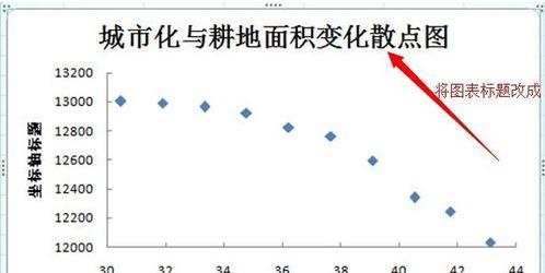 制作散点图步骤8:修改图表标题。单击图表标题,激活编辑,输入“城市化与耕地面积变化散点图”。