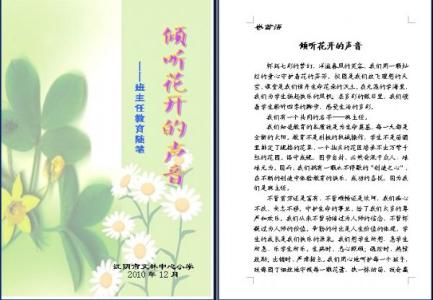 班主任工作是一种岗位,但更是一种重大的责任,我们深深的知道,班主任承载着为中华民族的伟大复兴而育人的重任。所以我们不怕艰苦,因为心中有执着的信念;我们不怕压力,因为我们相信,只有压力才是教育工作动力的不竭源泉。作为班主任,我们不需要太多的荣誉和赞美,因为我们已经习惯了默默无闻的奉献;我们不需要太多的物质和金钱,因为我们怕世俗的物欲污染了纯洁的心灵和火热的激情;我们更不需要太多的称号,因为我们只喜欢学生轻轻喊着两个字“老师”……