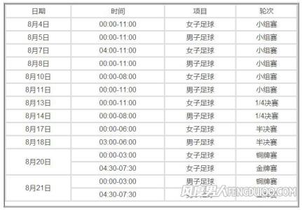 1.2016年奥运会赛程表安排时间完整版