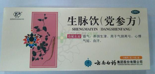 生脉饮(云南白药)的功效与作用生脉饮(云南白药)益气复脉,养阴生津。用于气阴两亏,心悸气短,脉微自汗。