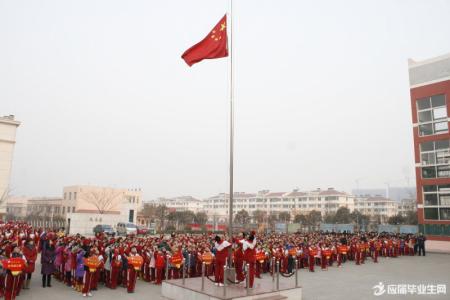 女:(升旗手都准备好之后。)下面进行第二项:升国旗,唱国歌,全体师生行注目礼,少先队员行队礼。(升完旗后说)礼毕!