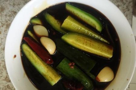 简易腌黄瓜的做法――简介本经验介绍简易腌黄瓜的做法,具体操作步骤如下所述:简易腌黄瓜的做法――方法/步骤简易腌黄瓜的做法 1、一根黄瓜,切片,放煮锅里。加一点生抽酱油,加一点老抽酱油(因我想要那种比较深的颜色),加一点醋,加一点糖,加一