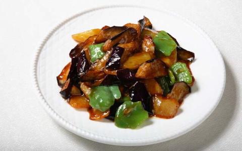 主料:茄子,150克,土豆(黄皮)100克,柿子椒50克,青椒50克,