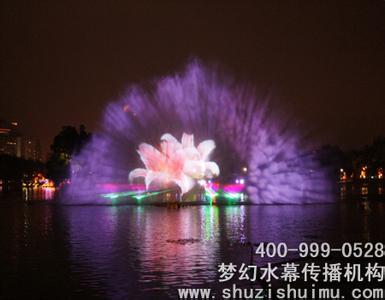 水幕电影是通过高压水泵和特制水幕发生器,将水自下而上,高速喷出,雾化后形成扇形“银幕”,由专用放映机将特制的录影带投射在“银幕”上,形成水幕电影。当观众在观摩电影时,扇形水幕与自然夜空融为一体,当人物出入画面时,好似人物腾起飞向天空或自天而降,产生一种虚无缥缈和梦幻的感觉,令人神往。水幕电影投影机由机械装置、控制支架、通讯口、软件、时间信号界面及DMX512接口组成。该投影机的发动机通过光学传感控制,精度高,其控制方法有三种:编程控制、直接控制和实用程序控制。水幕高达20余米,宽30-50米,各种VCD光盘或水幕专用影片均可在水幕上播放,影视效果奇特、新颖并是极佳的广告宣传工具,各种广场及阔旷的水面均可安装水幕电影。