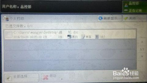 卡片放好后,打印机主屏会显示如下图所示(左),用手指点击“个人打印”然后会显示呢要打印的文件,如图所示(右)