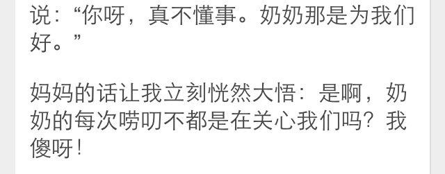 在世界上,有一种特别的爱,那就是唠叨。唠叨的爱是无处不在,奶奶的嘴边常挂着唠叨的爱,因为我就有过亲身体验,因为我的奶奶就是这类人,每个人都知道,人老了也就慢慢会变得唠叨起来。无论我在哪里,都会感觉到奶奶的唠叨。就像空气,弥漫在我的周围。每天每时她都不厌其烦地唠叨个不停。