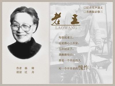有一次老王很不幸,得个一种怪病,虽然他两眼发直,身体僵硬,但是他还是很坚强,还是帮作者送东西,而且给他钱的时候他坚持不要,只要一些白色的布,之后几天遇到了她的一个朋友,我问他老王好些吗?他的朋友却告诉了我一个让我震惊的消息,老王已经离开了人世。我当时心情十分低落,后悔拿钱侮辱了他。我继续问老王的墓地在哪里?可是他的朋友却告诉他老王是用几块白布包着,然后就没再说。从中我感受到老王的苦憋在心里。我觉得这样的人应该受到别人的尊敬。