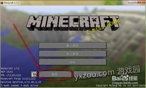 打开【我的世界】游戏,在主界面点击左下角的【选项】。