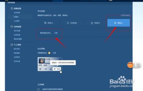 点击权限设置,进入权限设置后点击权限设置下的防骚扰。选择可以给留言板留言的人或者仅自己或者好友等。这里选择指定人,