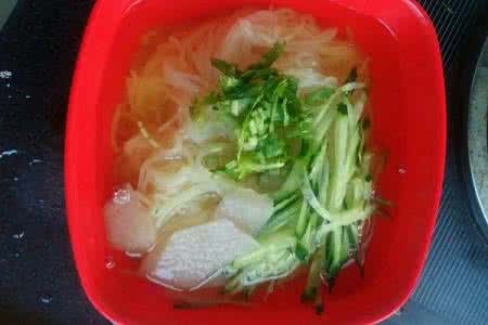 冷面汤的正宗做法主要材料:荞面、鸡蛋、胡箩卜、黄瓜、梨、海苔丝
