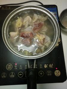 4、锅中水烧开,川烫3到4分钟去血水,然后捞出。