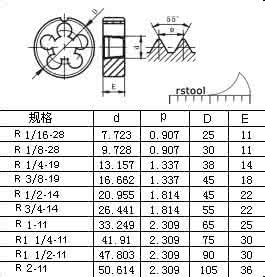 英制螺纹标准规格表55°(密封用圆锥管螺纹)