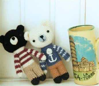 毛线钩编小物越来越流行啦,来欣赏下这一对可爱的海军风小熊吧!蓝白相间的毛衣,胸前还有小海锚呢。给你动手做的毛线编织小布偶设置一个美丽的场景,比如这两只可爱的小熊,让他们搭上流行的海军风,畅想在蔚蓝的大海上。今天小编教大家手工