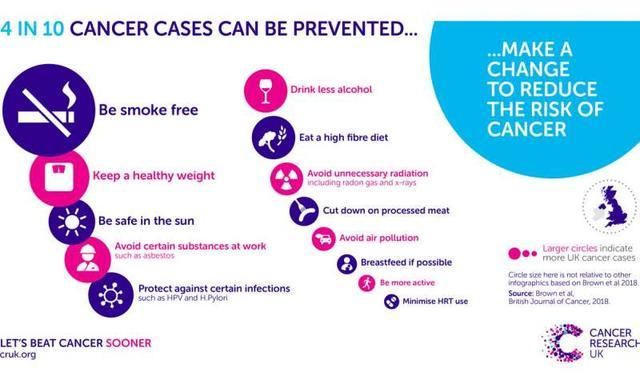 英国癌症研究公司首席执行官哈帕尔库马尔表示:“过着健康的生活并不能保证一个人不会得癌症,但它可以帮助你有所收获,这些数字表明我们每个人都可以采取积极的步骤以帮助减少我们个人的疾病风险。”这项研究清楚地表明了吸烟和肥胖对癌症风险的影响。预防是遏制癌症最具成本效益的方法,英国政府可以通过做出健康选择作为简单选择来帮助人们做更多事情。”