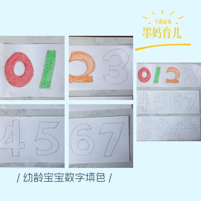 唱的时候大人准备一组空心数字,让孩子一边涂色,一边感受到歌谣对应的内容。