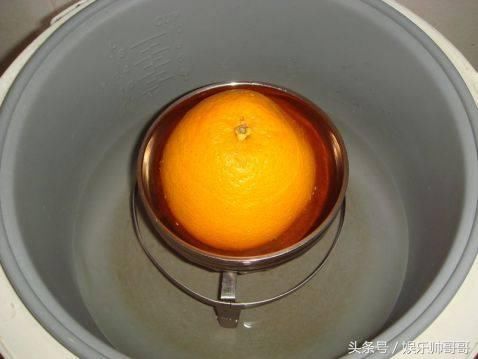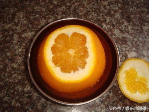 洗干净后在橙子顶部切开一小部份做盖子,切开后在橙肉上稍放点盐