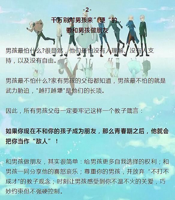 有很多家长都在微信上留言反映男孩该怎么教育,说皮了吧,有时候又气得想打,他还跟你嬉皮笑脸的,说太安静了吧,男生还是要会交际,所以这次想给大家分享一些养男孩的原则,做到这些,教育孩子一定会省力不少。