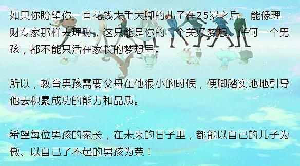 我们当父母的,都盼望着孩子长大以后有出息,都望子成龙,望女成凤。特别是男孩子,往往需要承担更大的责任,所以男孩往往被一个家庭寄予更高的厚望,如何把儿子教育得优秀是很多家长一直在研究的问题。
