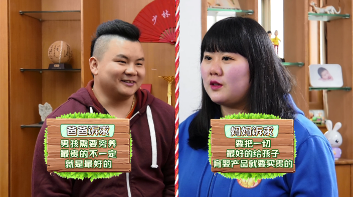 第一组家庭是长期出差的功夫家庭,夫妻两人主要的育儿矛盾是对孩子支出配比问题,妈妈认为童年只有一次,自己辛苦生下来的宝宝,就该什么都用最好的,典型的给孩子只买贵的,不看对的。爸爸则认为男孩要穷养,长大才有出息,而且认为妈妈攀比心重,花钱如流水,对孩子的支出要量力而行。现在很对家庭对宝宝呵护万分,恨不得把全世界最好的都给孩子,认为只要是贵的就是最好的,现实中真的是这样吗?奶粉是否也一定要认准进口的?对孩子的支出又是否有固定配比?现场嘉宾和专家给出了专业的意见。