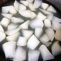 2.萝卜块放入锅中,加入两碗纯净水,大火烧开。