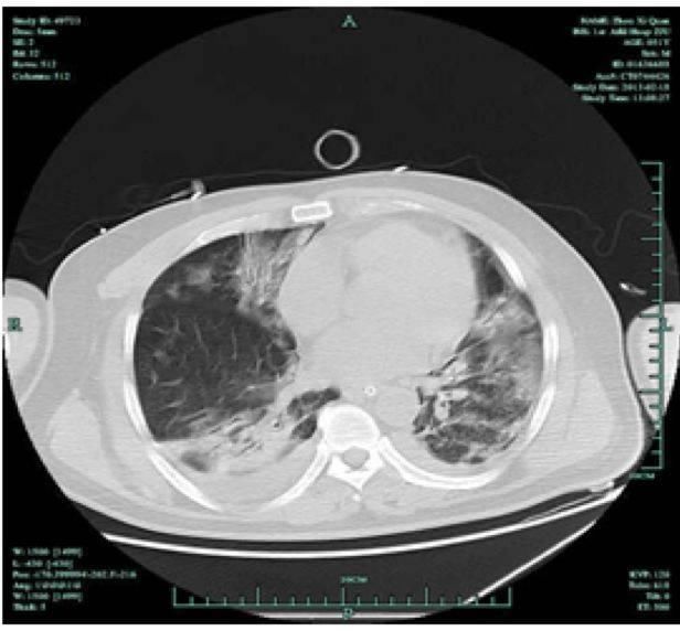 •化验检查:WBC 21000/dl,N92%,HB9.2g/dl,PL 84000/dl,CRP 185,PCT 8.5,Cr 75,白蛋白2.8g/dl,PT14s,D-二聚体5600