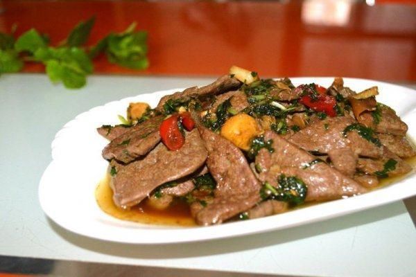 方法:将羊肝切片,锅内放入香油至八成热,下羊肝及盐翻炒即成。