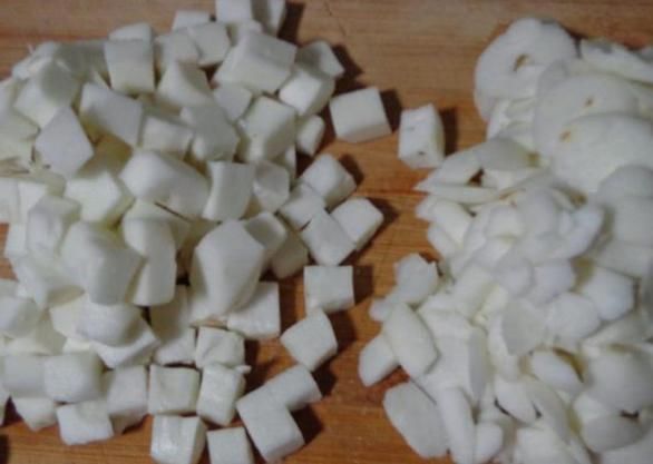 第三步:胡萝卜洗干净削掉最外一层也切丁,尽量切小点