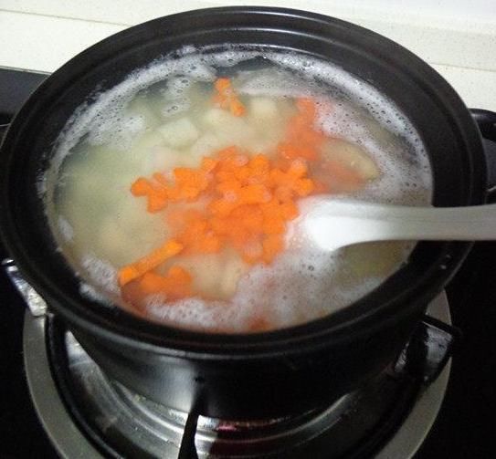 第七步:放入胡萝卜丁煮10分钟开了就可以了