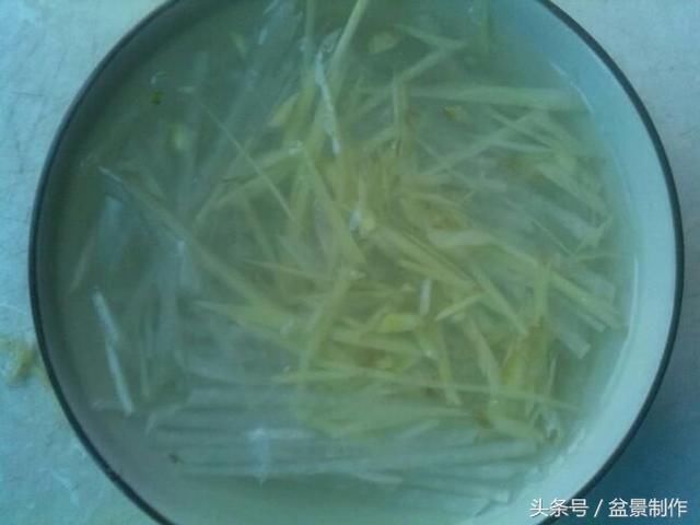 首先一截白萝卜加一块姜,切丝,如果家里有那种便切器最好了,越细越好。