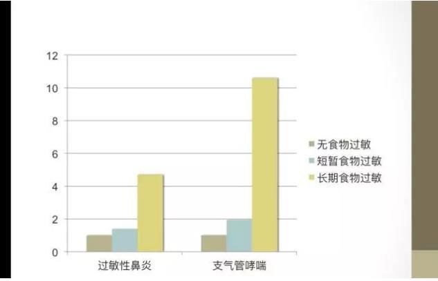 上图表示,0-18月婴幼儿如果不存在食物过敏、短暂食物过敏和长期食物过敏三种情况,以后(>2岁)过敏性鼻炎和支气管哮喘的发病率之间的比较。可以看出,长期食物过敏的患儿发展成为过敏性鼻炎和支气管哮喘的风险是短暂食物过敏患儿的3.4倍和5.5倍,是无食物过敏的患儿的4.7倍和10.6倍。所以,牛奶蛋白过敏(CMPA)的小孩,并不是随意可以转奶的。