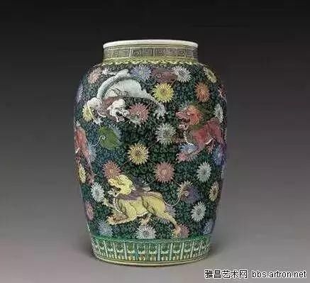 古书记载:“黑白等地而绘绿黄紫三色花者谓之素三彩,以黑地为贵。西人嗜此,声价极高,一瓶之值辄及万金,以怪兽为奇特,人物次之,若花鸟价亦不赀也。”有琉璃厂老人回忆,真品康熙素三彩大件在民国时期就已罕见,尤其是康熙黑地素三彩,即便是一件残口的大瓶,当时就可值1万大洋,足见其贵重。