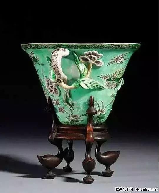 清康熙·素三彩凤鸬纹圆雕双二酒杯