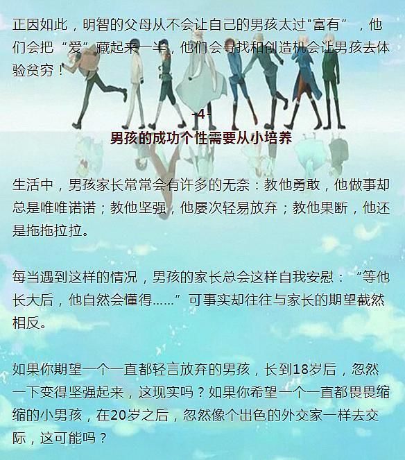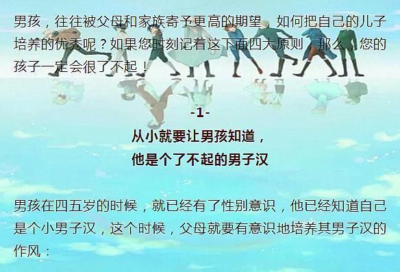 我们当父母的,都盼望着孩子长大以后有出息,都望子成龙,望女成凤。特别是男孩子,往往需要承担更大的责任,所以男孩往往被一个家庭寄予更高的厚望,如何把儿子教育得优秀是很多家长一直在研究的问题。