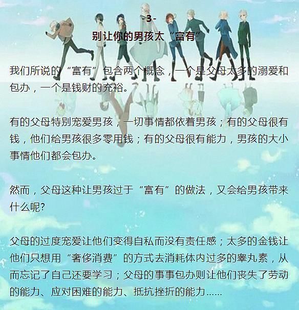 有很多家长都在微信上留言反映男孩该怎么教育,说皮了吧,有时候又气得想打,他还跟你嬉皮笑脸的,说太安静了吧,男生还是要会交际,所以这次想给大家分享一些养男孩的原则,做到这些,教育孩子一定会省力不少。