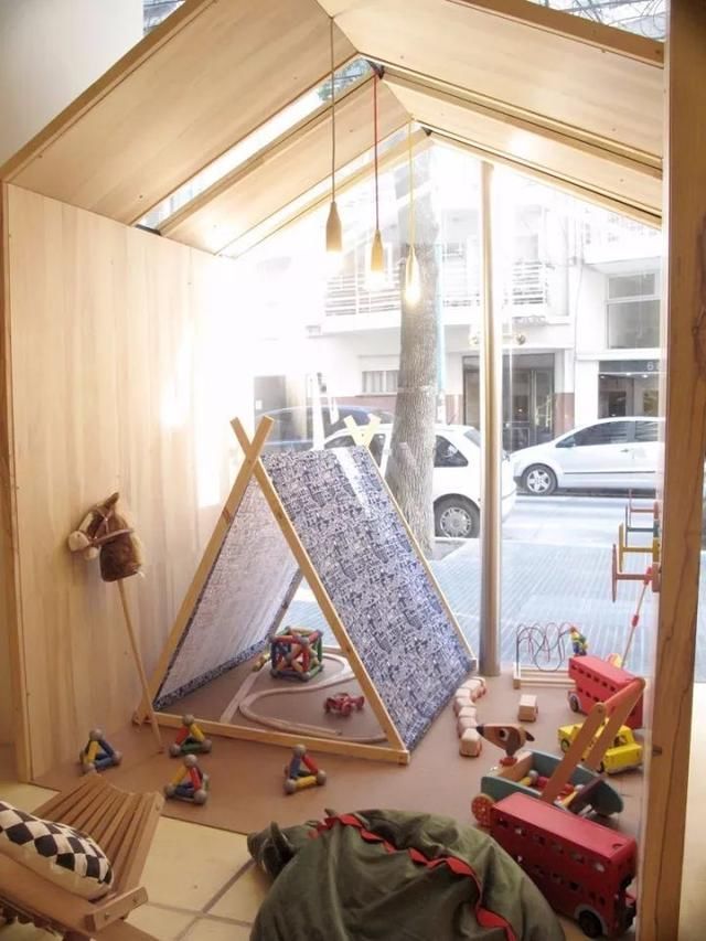 餐饮区与游戏室被一个木栅栏隔开,这样孩子们可以自己玩,而家长们也能看到。选用的家具给人一种舒适悠闲的静谧之美,同时还能有效的帮助减少回声干扰。